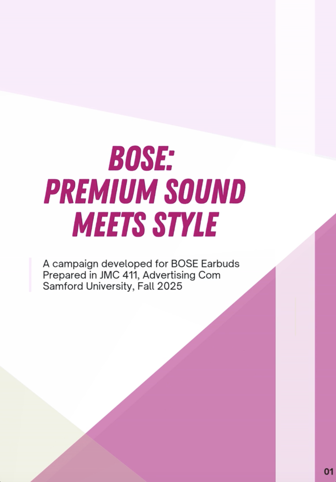 This integrated ad campaign was developed for a class project to position Bose earbuds as a premium yet style-forward audio choice for Gen Z consumers (ages 18–24). The campaign focused on increasing brand awareness, positive perception, and purchase intent by highlighting Bose’s key differentiators: modern design, all-day comfort, and industry-leading sound quality that seamlessly fits into Gen Z’s everyday lifestyle.